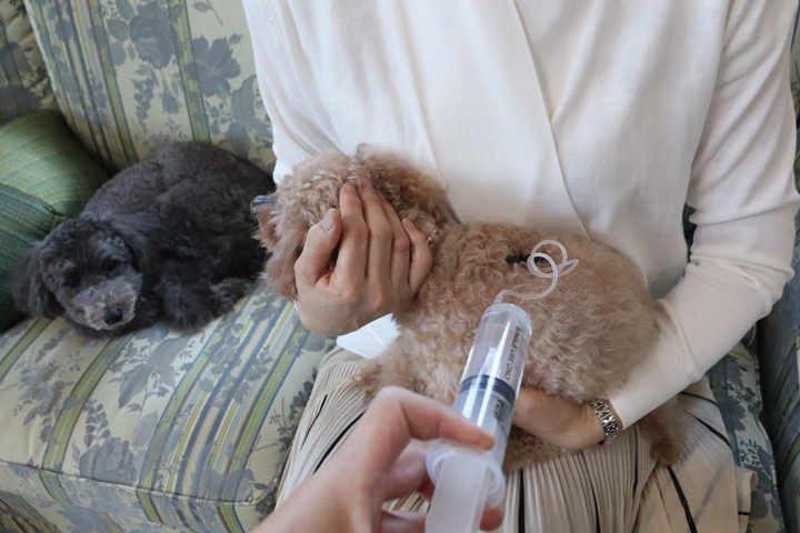 往診で獣医師や愛玩動物看護士が対応するのはもちろん、例えば慢性腎臓病で日常的に皮下点滴をする必要がある場合は、往診の際に飼い主さんとご家族にそのやり方と注意点をレクチャーいたします。