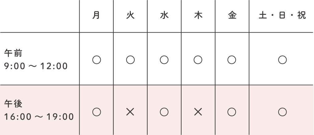 | 月 | ○ | ○ |